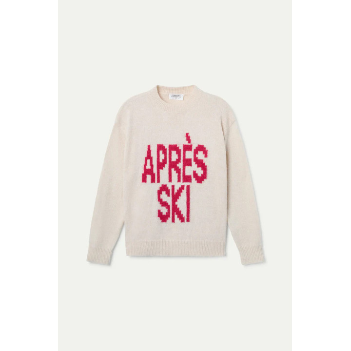 The Compañía Fantástica Jacquard sweater with an après-ski print offers effotless warmth and style. This jumper features a round neck and long sleeves in a beautiful cream colour with a stunning red jacquard pattern emblazoned across the front. Elevate your winter closet with this vibrant and stand out jumper!