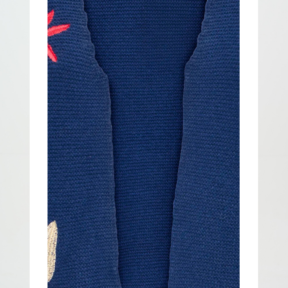So cute and effortlessly versatile! This navy knitted waistcoat is perfect for layering over shirts, dresses, or tees, adding a stylish, cozy touch to any outfit. Featuring subtle embroidered detailing and crafted from 75% polyester, 25% cotton, it’s soft, wearable, and a must-have for layering.