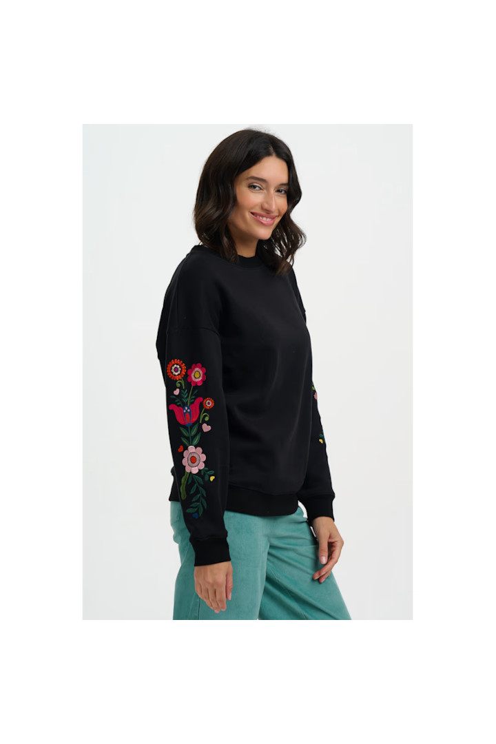Eadie Black, Folk Floral Sweatshirt - Sugarhill BrightonEadie Black, Folk Floral Sweatshirt – Sugarhill Brighton