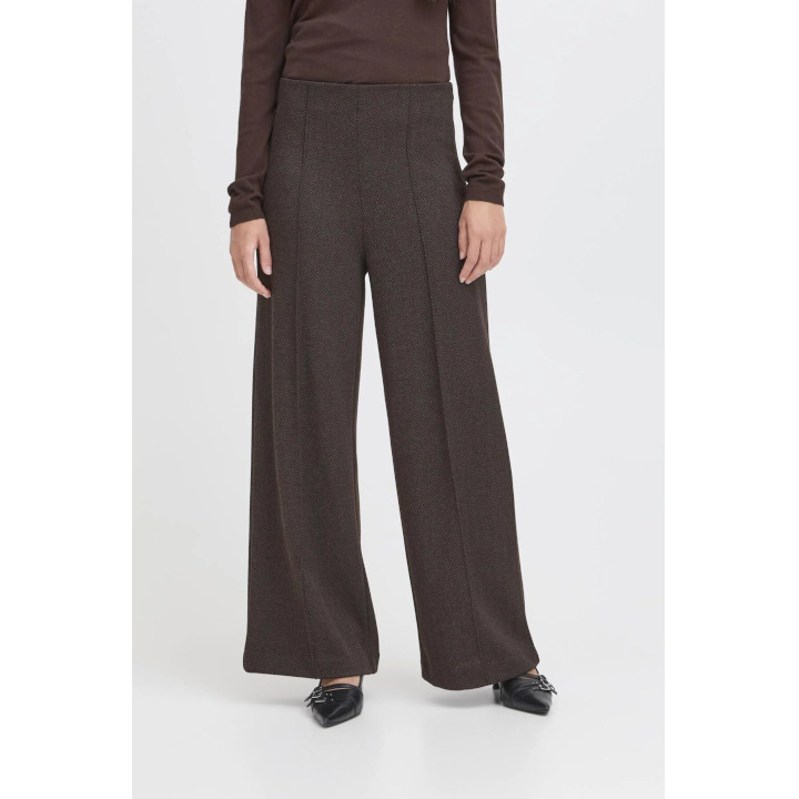 The Ichi Kate Jacquard Print Wide Leg Trousers combine style with comfort, featuring a stretch fabric that adapts to your movements for all-day ease. Designed with a side zip for a sleek, minimalist finish, these trousers offer a flattering wide-leg silhouette that elongates the legs and enhances mobility. Ideal for both professional settings and smart-casual looks, they provide a modern, sophisticated edge to your wardrobe.
