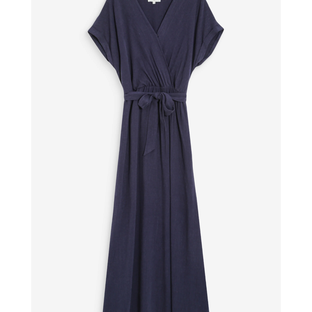 The POLLEN long dress revisits a signature silhouette from the Grace & Mila house. The crossover neckline and short sleeves create a look that is both relaxed and elegant. The POLLEN V-neck dress celebrates minimalist elegance with subtle details and perfect fluidity. The waistband and elastic waist help to shape and enhance the silhouette.