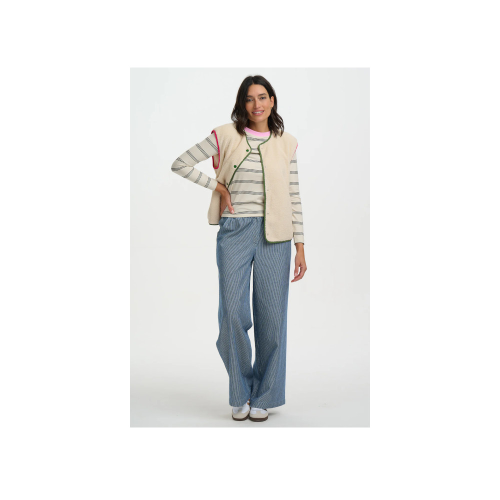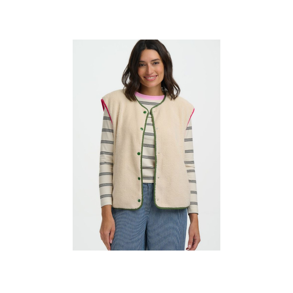 The Sophie Fleece Gilet is a cosy layering essential with a relaxed, easy-to-wear fit. Crafted in soft oatmeal fleece, it features a sleeveless design, popper fastening and contrast pink and green binding for a playful finish. Perfect for throwing on over knits or long-sleeve tees, Sophie adds warmth without bulk for everyday comfort.